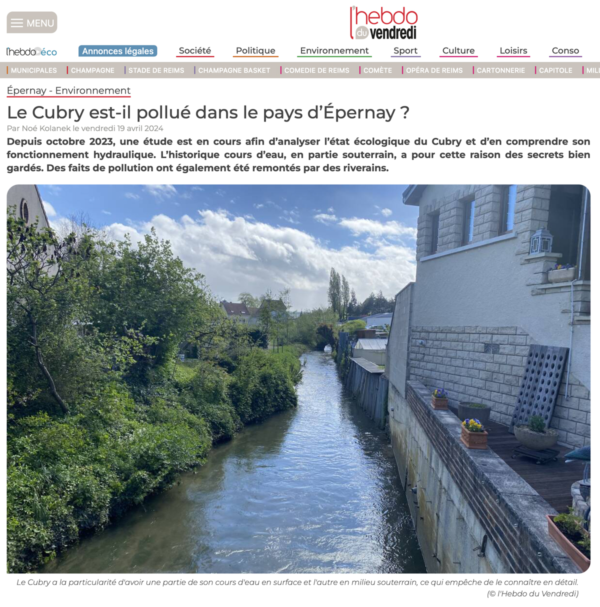 À Épernay, une conduite d’eaux usées traversant la rivière Le Cubry s’est fracturée au milieu du lit mineur, provoquant une pollution à environ 200 mètres de la confluence avec la Marne.